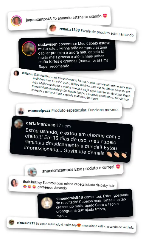 ASTANA CAPILAR é um suplemento capilar inovador que combate a queda de cabelo. Sua fórmula única fortalece os fios de dentro para fora, estimulando o crescimento e melhorando a saúde do couro cabeludo.