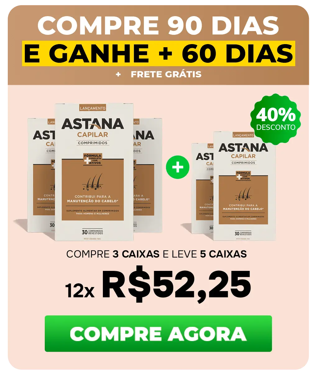 ASTANA CAPILAR é um suplemento capilar inovador que combate a queda de cabelo. Sua fórmula única fortalece os fios de dentro para fora, estimulando o crescimento e melhorando a saúde do couro cabeludo.